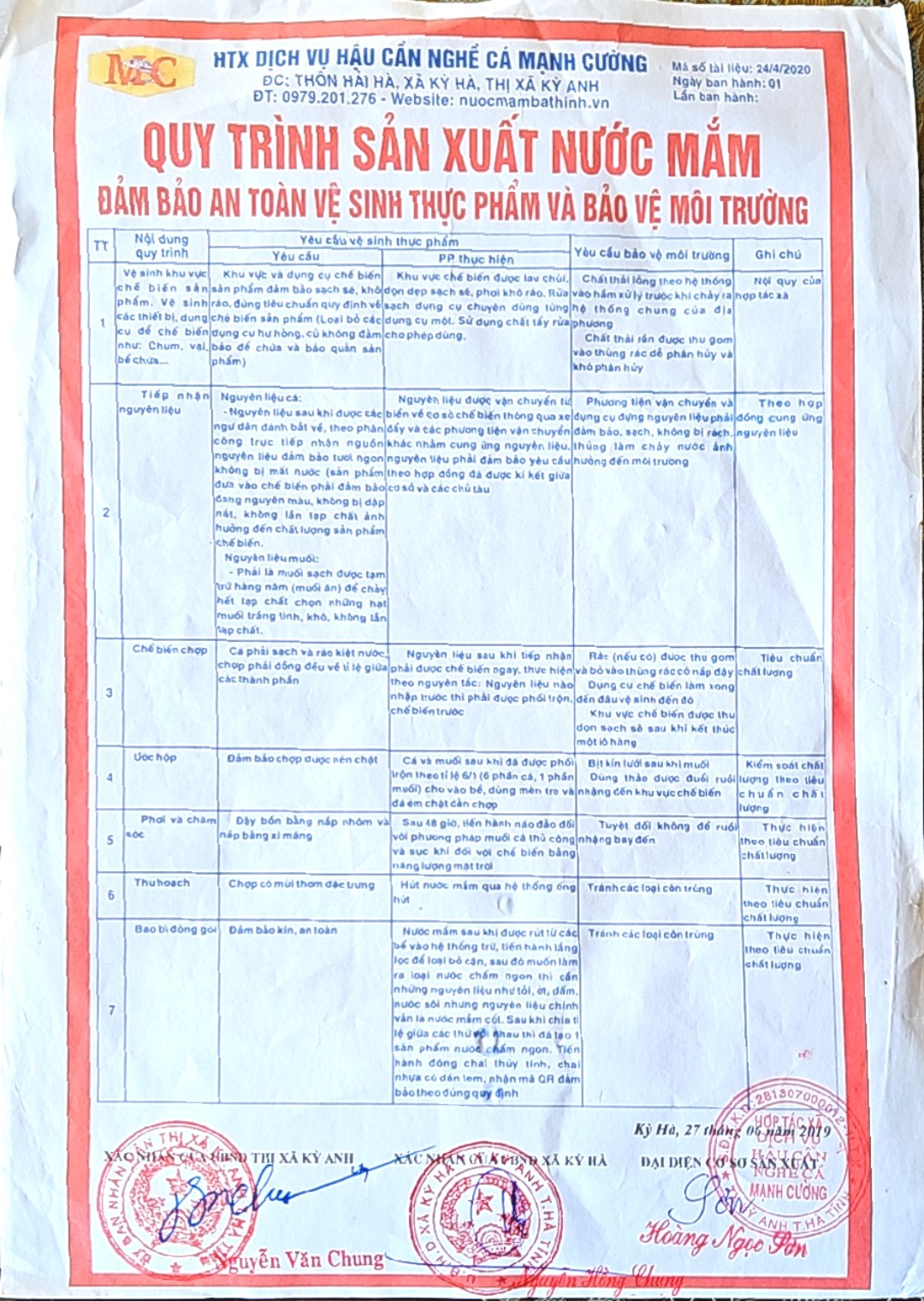 Xuôi theo triền đê về xã Kỳ Hà thị xã Kỳ Anh, tọa lạc tại thôn Hải Hà là cửa biển hoan sơ xinh đẹp, nơi đây là bến đỗ tàu thuyền tấp nập đi về.Không biết tự lúc nào ngư dân nơi đây đã ưu ái đặt tên cho bến đỗ này là " Bến Bà THINH" bởi nơi đây gắn với nghề làm nước mắm truyền thống của gia đình Bà THINH từ xa xưa.Cơ sở muối nước mắm nằm ngay cạnh bến nên nguồn cá tươi ngon được thu mua ngay khi các thuyền vừa cập bến. " Cá cơm tươi ngon + muối biển Kỳ Hà chất lượng + quy trình ủ chợp kỹ lưỡng" chính là bí quyết gia truyền tạo nên sự khác biệt độc đáo của nước mắm Bà THINH. Sự kết hợp giữa muối mặn Kỳ Hà được cất giữ 2 năm cùng với những chú cá cơm tươi ròng được đánh lên từ biển qua bàn tay khéo léo của những người thợ làm mắm cần cù, chịu khó,qua phơi sương mà chắt ra từng giọt như cái tình sâu đậm của trời đất. Nước mắm Bà THINH có màu vàng cánh gián, sóng sánh, đã dùng qua thì khó có thể quên được mùi thơm của cá trộn lẫn vị mặn mòi,ngai ngái của biển.Có lẽ vì đặc trưng riêng như vậy nên nước mắm Bà THINH Theo thời gian không chỉ dừng lại là món ăn địa phương mà đã, đang được cố gắng gìn giữ, phát triển thành thứ "Đặc sản rất riêng" của vùng biển Kỳ Hà. Nguồn nguyên liệu dồi dào và phong phú cộng Thêm phương pháp làm mắm lâu đời, tiếp nối những phương thức truyền thống của cha ông, năm 2015 Hợp Tác Xã Dịch Vụ Hậu Cần Mạnh Cường được thành lập. Cũng chính từ đó " thương hiệu nước mắm Bà THINH" bắt đầu được lan rộng tui nhiên không có nhãn hiệu. Đến năm 2019 cơ sở đã đăng ký nhãn hiệu,logo, mã số mã vạch, cải tiến mẫu mã,bao bì. Đặc biệt từ năm 2018, Hợp Tác Xã đã phối hợp với Trung tâm ứng dụng tiến bộ khoa học công nghệ Hà Tĩnh để thực hiện chuyển giao công nghệ chế biến nước mắm bằng năng lượng mặt trời, kết hợp bể ổn nhiệt,gia nhiệt bổ sung và hệ thống náo đảo tự động. Đây là cơ sở sản xuất nước mắm đầu tiên trên địa bàn tỉnh Hà Tĩnh mạnh dạn đưa công nghệ vào sản xuất. Phương pháp chế biến nước mắm bằng năng lượng mặt trời được đánh giá cao bởi chất lượng sản phẩm hợp vệ sinh và bảo vệ môi trường giúp người sử dụng có thể hoàn toàn yên tâm. Mỗi năm,đạt sản lượng 40.000 lít nước mắm các loại; nước mắm đặc biệt, loại 1 , loại 2. Với phương pháp làm mắm lâu đời, được truyền lại qua nhiều thế hệ kết hợp công nghệ," Nước Mắm Bà THINH" chính là sản phẩm mang đậm,bản sắc của người dân Hà Tĩnh. Nước mắm " Bà THINH" xuất hiện trong bữa cơm của nhiều gia đình cho bữa cơm thêm trọn vị.