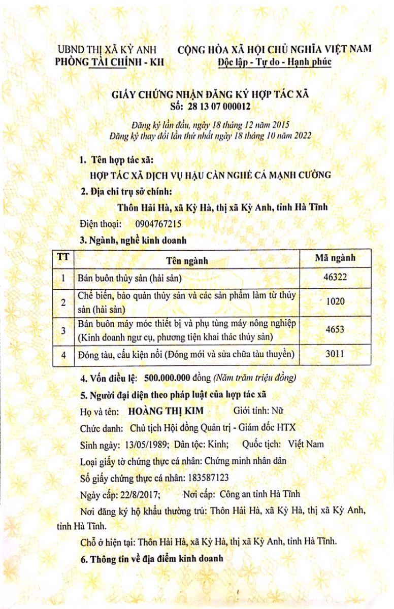 Hợp tác xã Dịch vụ hậu cần nghề cá Mạnh Cường
