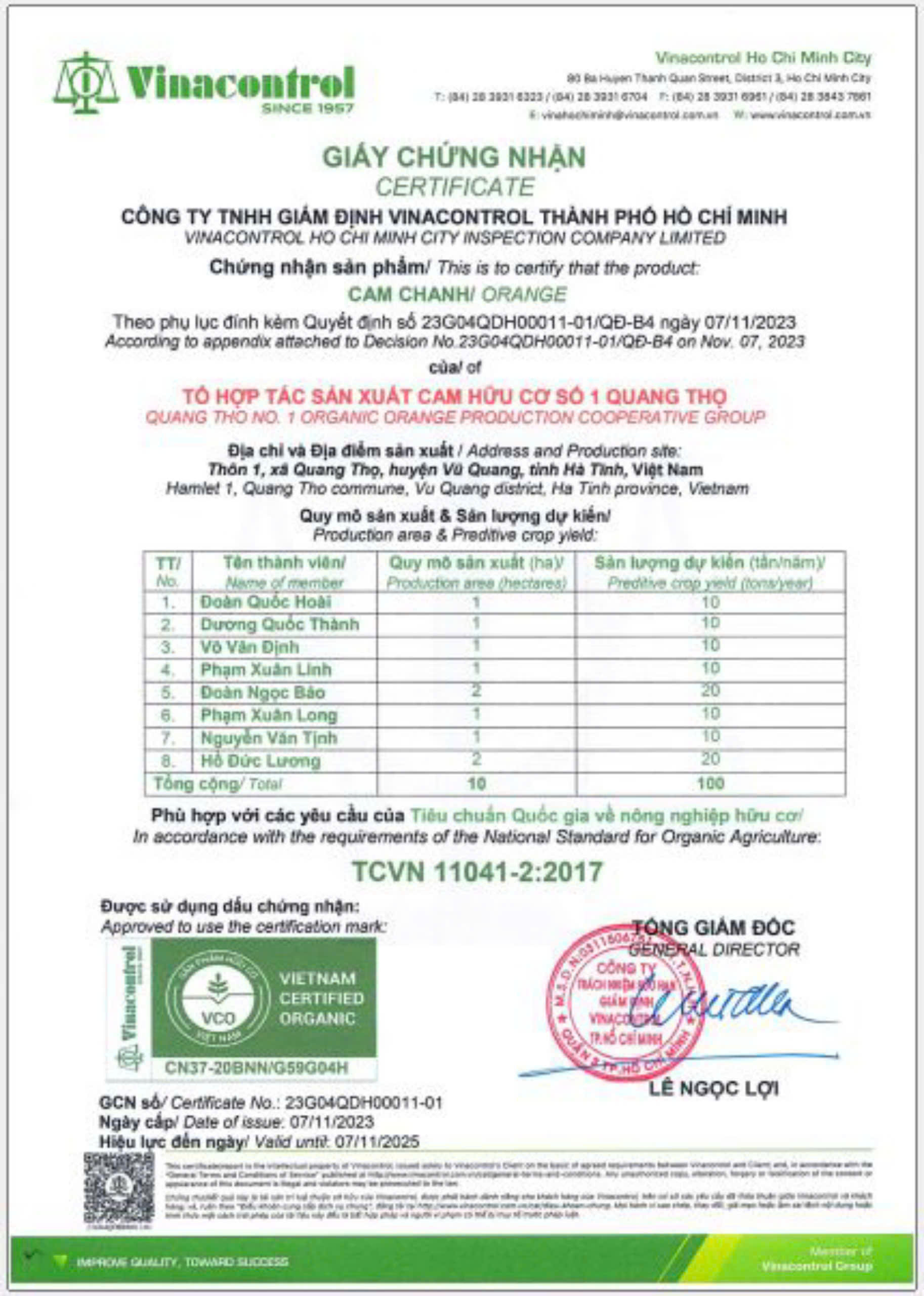 Sinh ra từ vùng đất khó nên chẳng có trở ngại nào có thể ngăn được khát khao vươn lên của những con người không đầu hàng số phận. Để thương hiệu Cam Bảo Phương – Vũ Quang ngày càng vươn xa hơn, tất cả các hộ dân trồng cam trong Tổ hợp tác đã nhất trí trồng cam theo một quy trình xanh, sạch, an toàn.