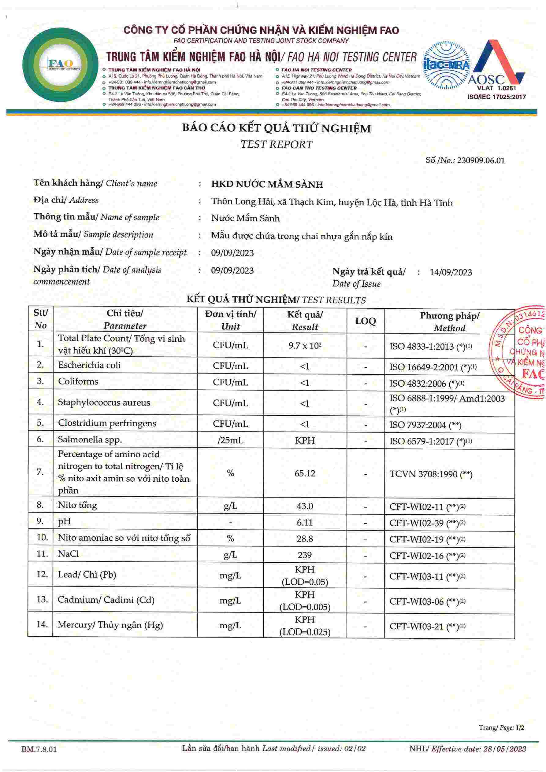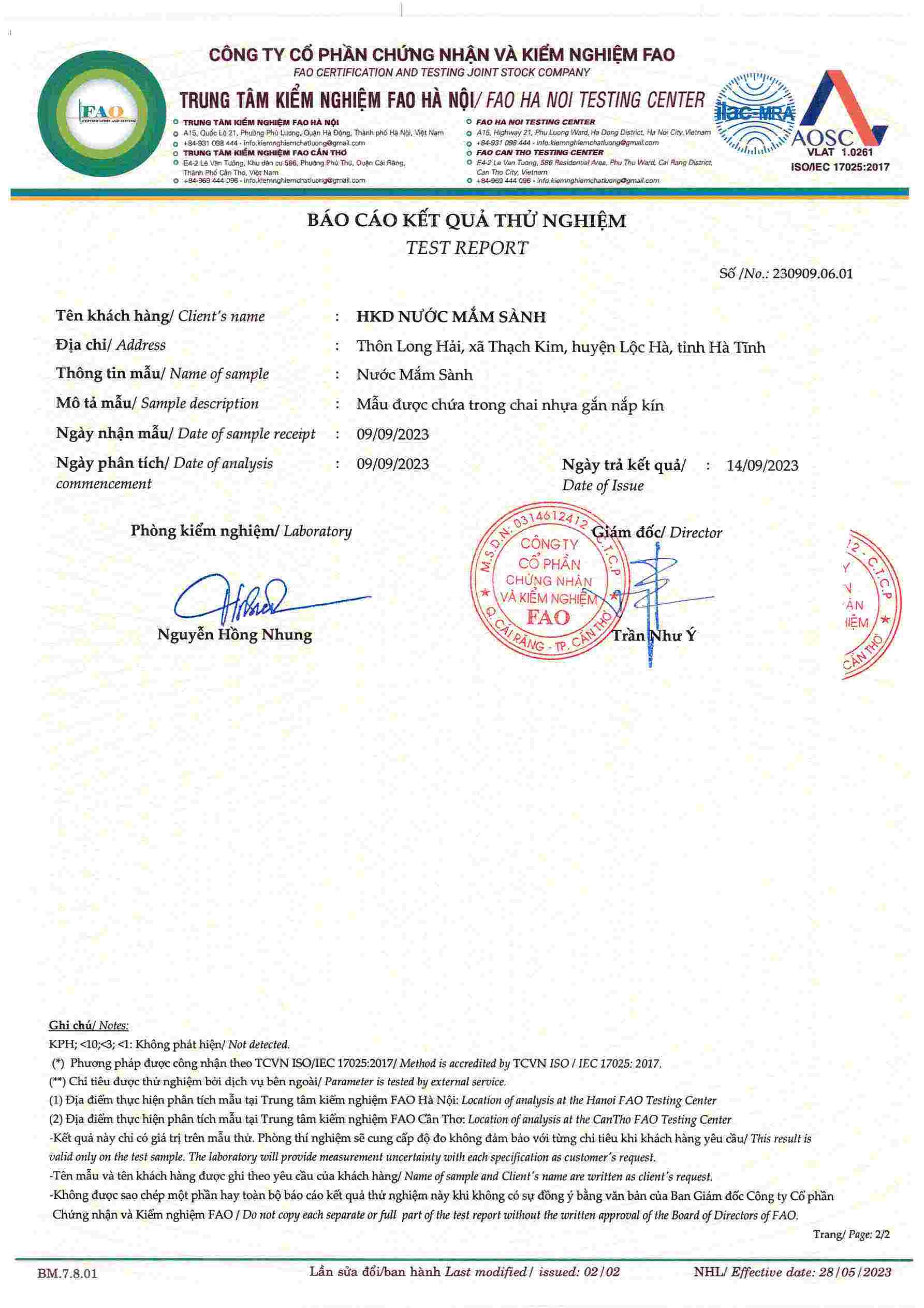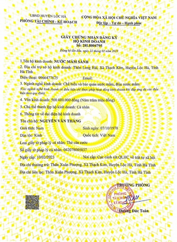 HỘ KINH DOANH NƯỚC MẮM SÀNH