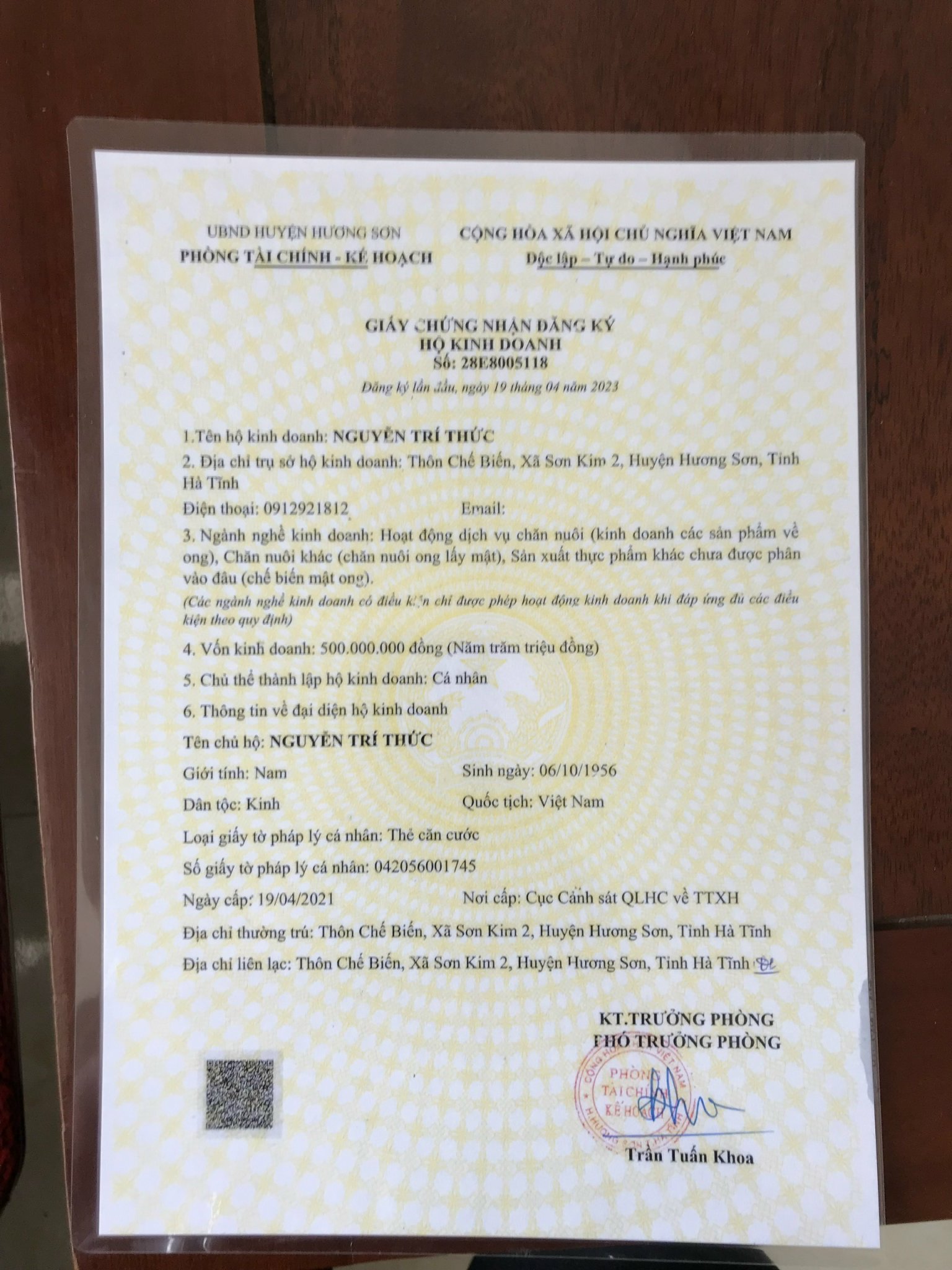 HỘ KINH DOANH NGUYỄN TRÍ THỨC