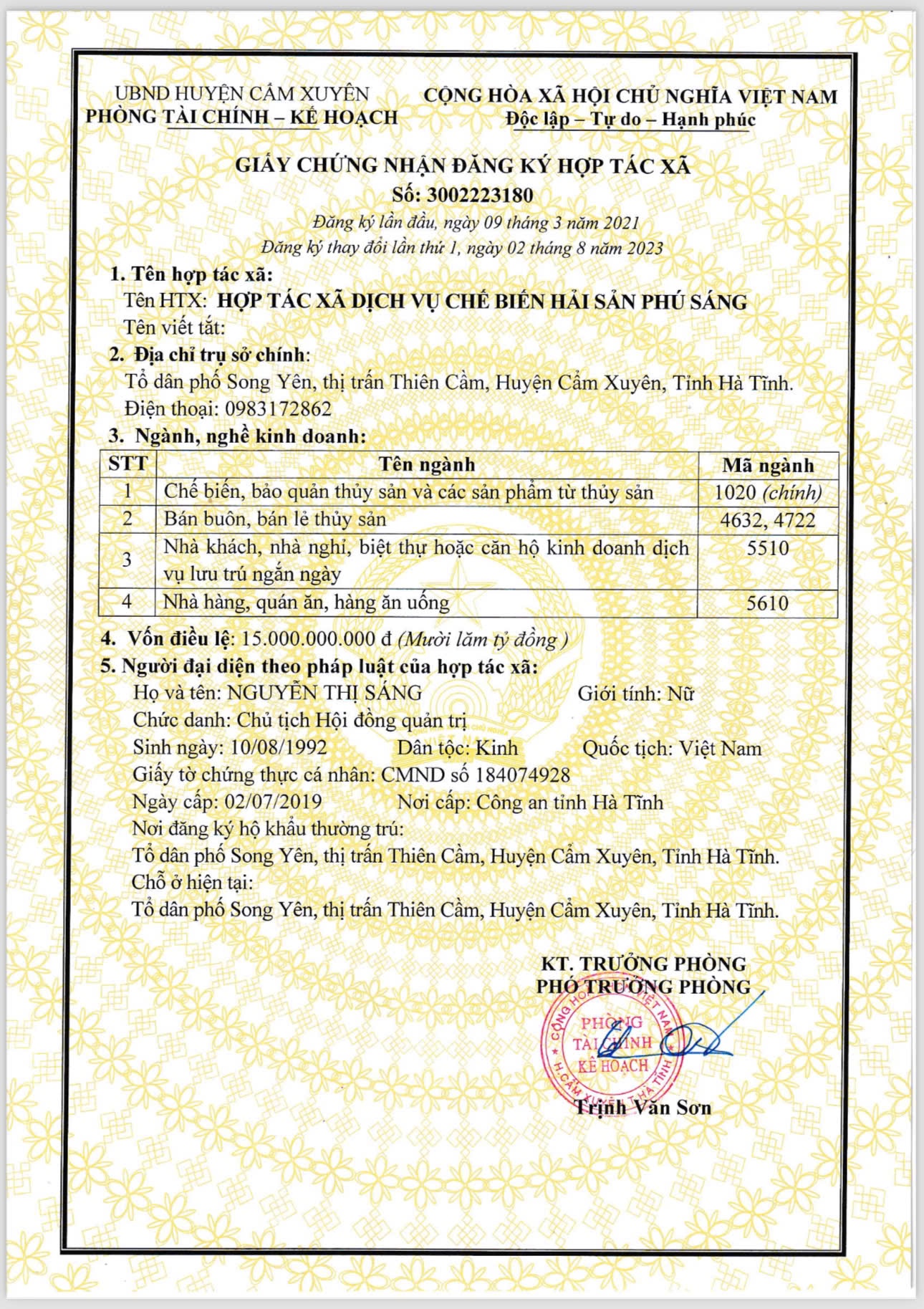 Hợp tác xã dịch vụ chế biến hải sản Phú Sáng