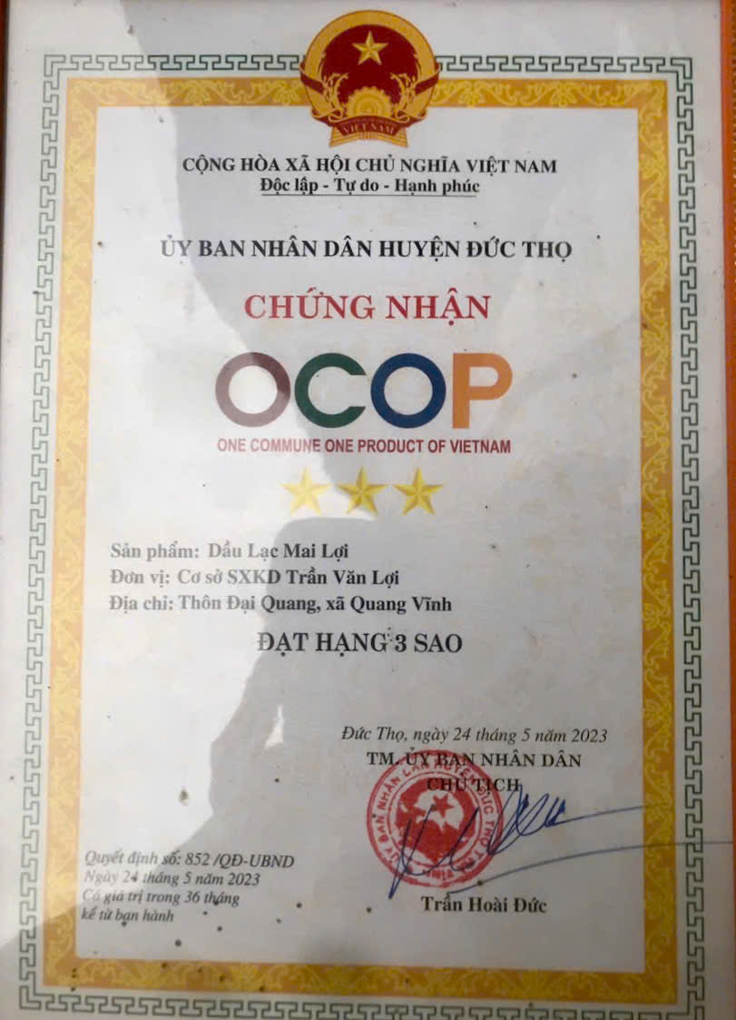 Nhằm đáp ứng nhu cầu ngày càng cao của thị trường, Cở sở chế biến dầu lạc Mai Lợii ( Thôn Đại Quang, xã Quang Vĩnh) đã thu mua hạt lạc của bà con trên địa bàn để chế biến thành dầu lạc. Sản phẩm sản xuất ra không chỉ tạo đầu ra ổn định cho người trồng lạc mà còn đáp ứng nhu cầu tiêu dùng thực phẩm sạch và an toàn của người dân. Qua đó, góp phần nâng cao giá trị nông sản trên địa bàn.