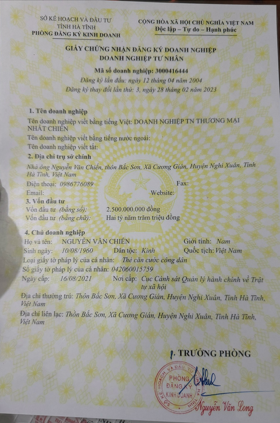 ĐĂNG KÝ KINH DOANH/ GIẤY PHÉP THÀNH LẬP