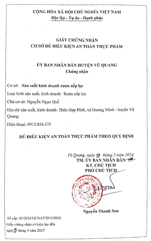 Tại huyện Vũ Quang, tỉnh Hà Tĩnh, một mảnh đất trù phú với những cánh đồng lúa trải dài xanh mướt và dòng nước ngọt lành, cơ sở Rượu nếp Ngọc Quế đã trở thành biểu tượng của truyền thống ẩm thực nơi đây. Dưới bàn tay tài hoa và tâm huyết của ông Nguyễn Ngọc Quế, thương hiệu này đã dần khẳng định vị thế của mình bằng những sản phẩm rượu nếp đặc trưng, được chế biến theo phương pháp cổ truyền nhưng vẫn kết hợp với công nghệ hiện đại để mang đến hương vị đặc biệt.