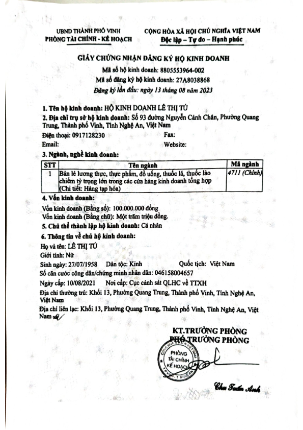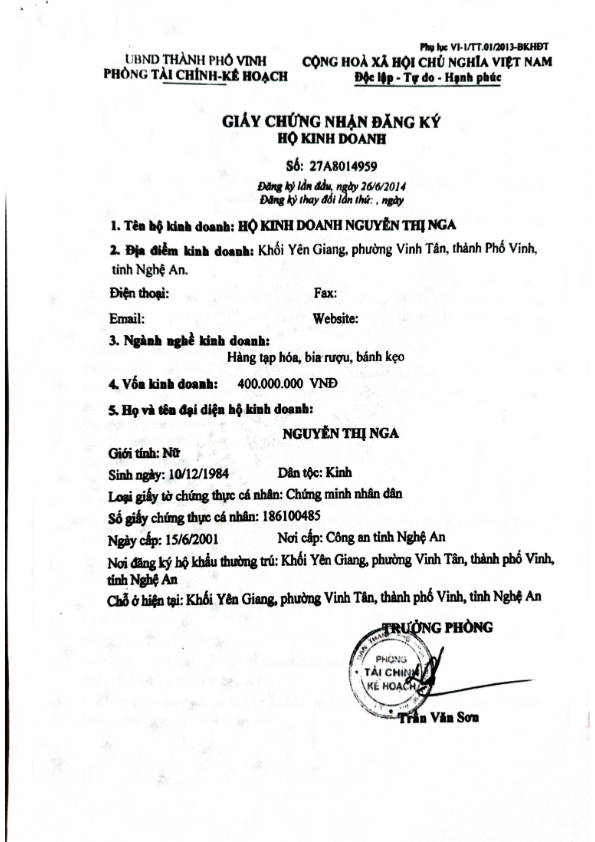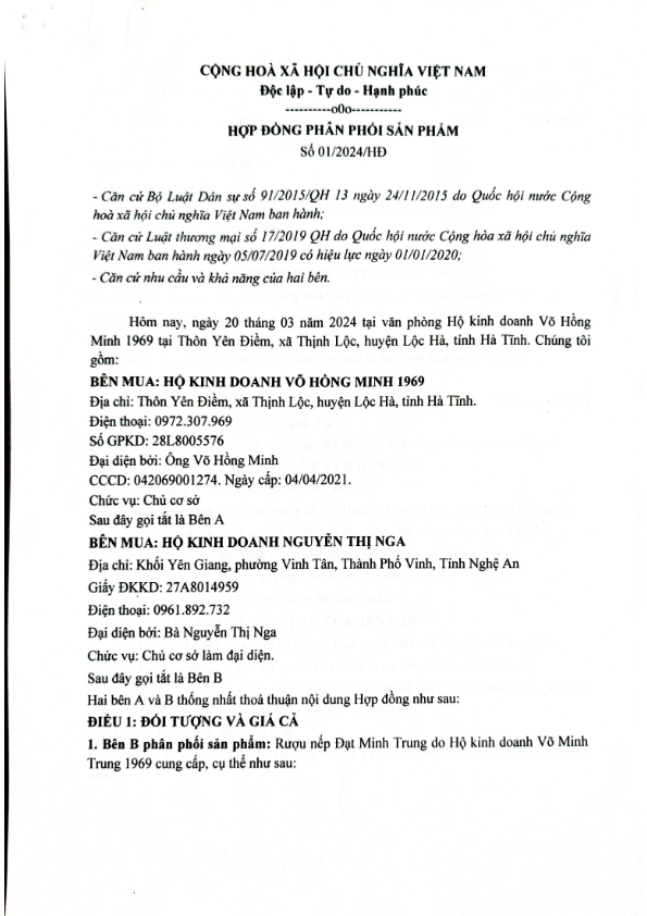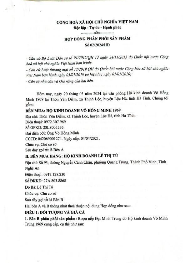 HỘ KINH DOANH VÕ HỒNG MINH 1969