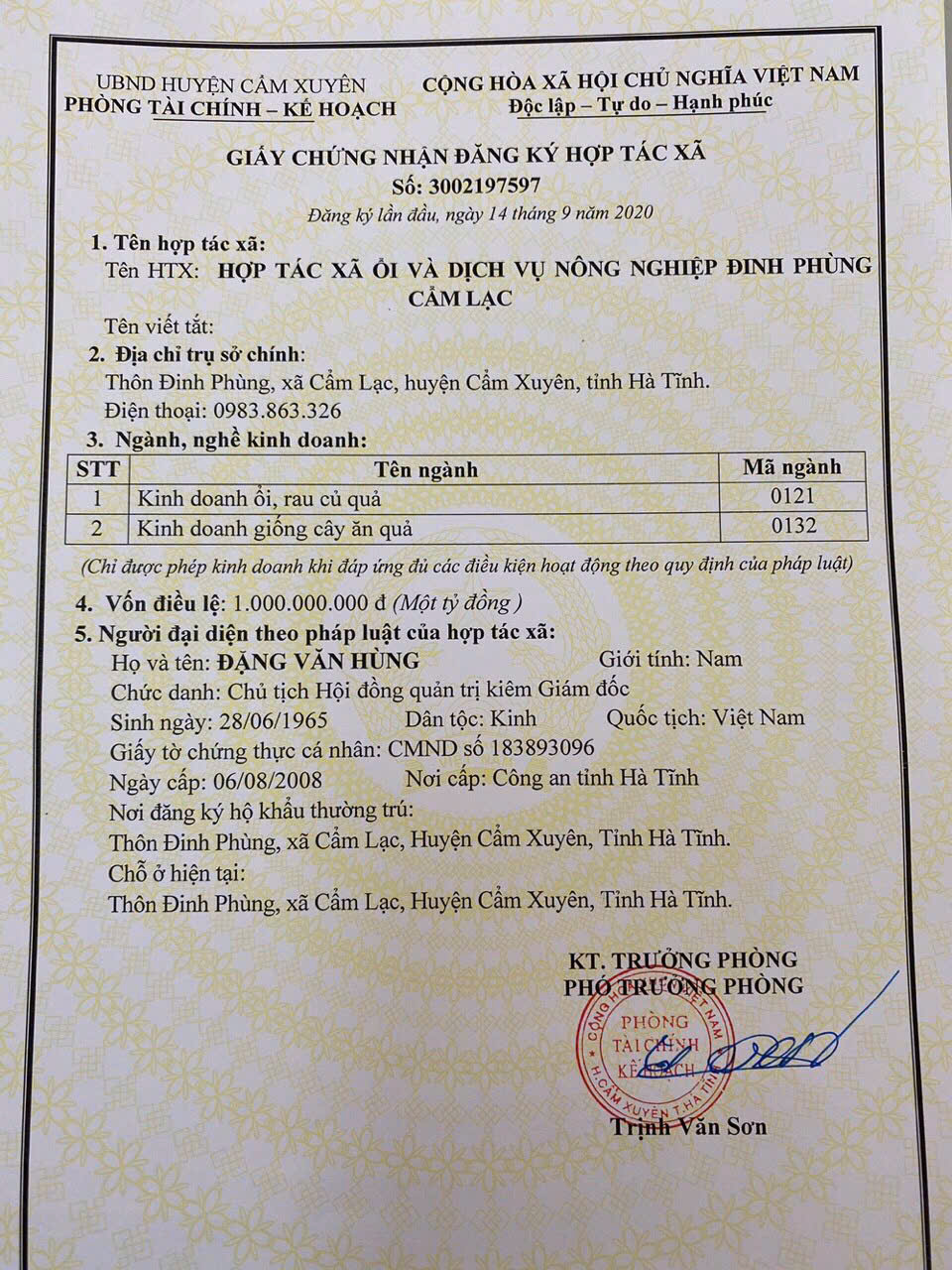 HỢP TÁC XÃ ỔI VÀ DỊCH VỤ NÔNG NGHIỆP ĐINH PHÙNG CẨM LẠC