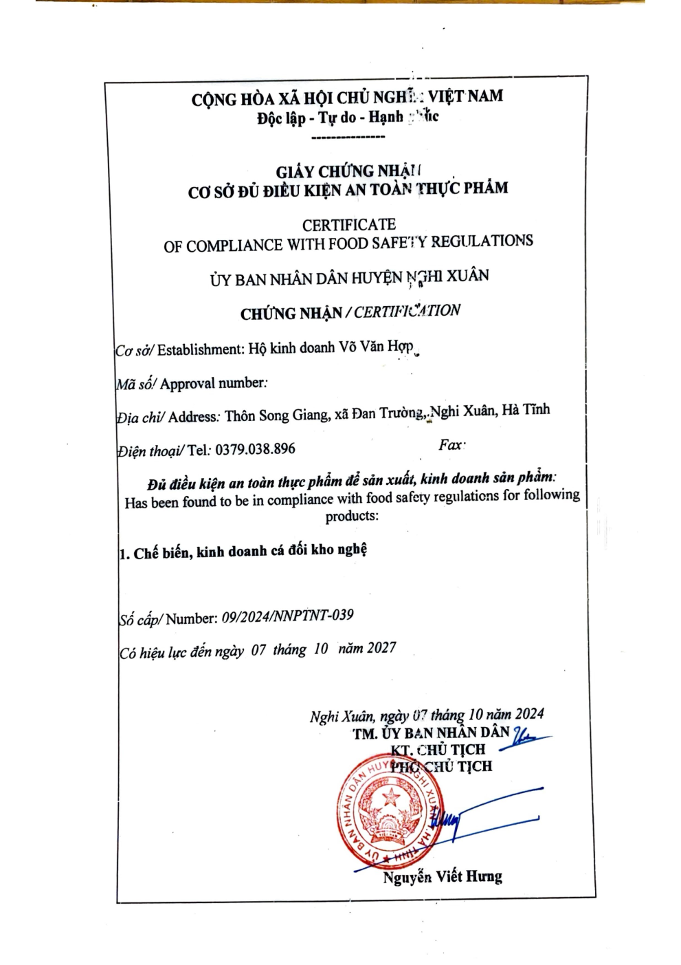 HỘ KINH DOANH VÕ VĂN HỢP