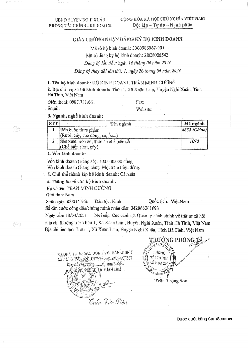 HỘ KINH DOANH TRẦN MINH CƯỜNG