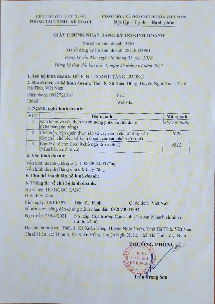 HỘ KINH DOANH TĂNG HƯƠNG
