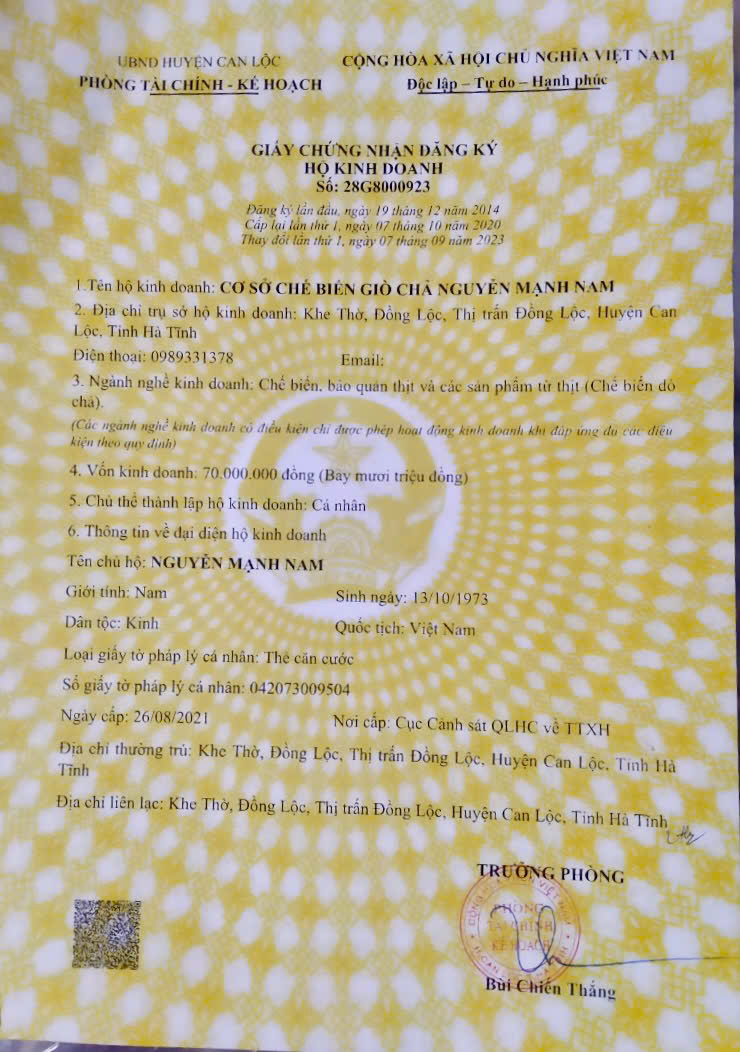 CƠ SỞ CHẾ BIẾN GIÒ CHẢ NGUYỄN MẠNH NAM