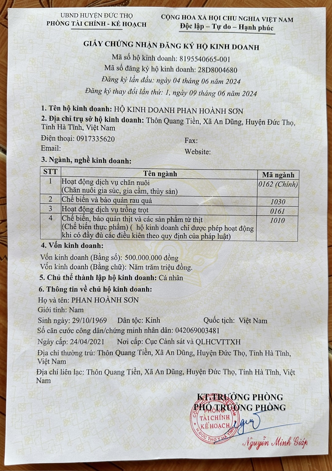 HỘ KINH DOANH PHAN HOÀNH SƠN