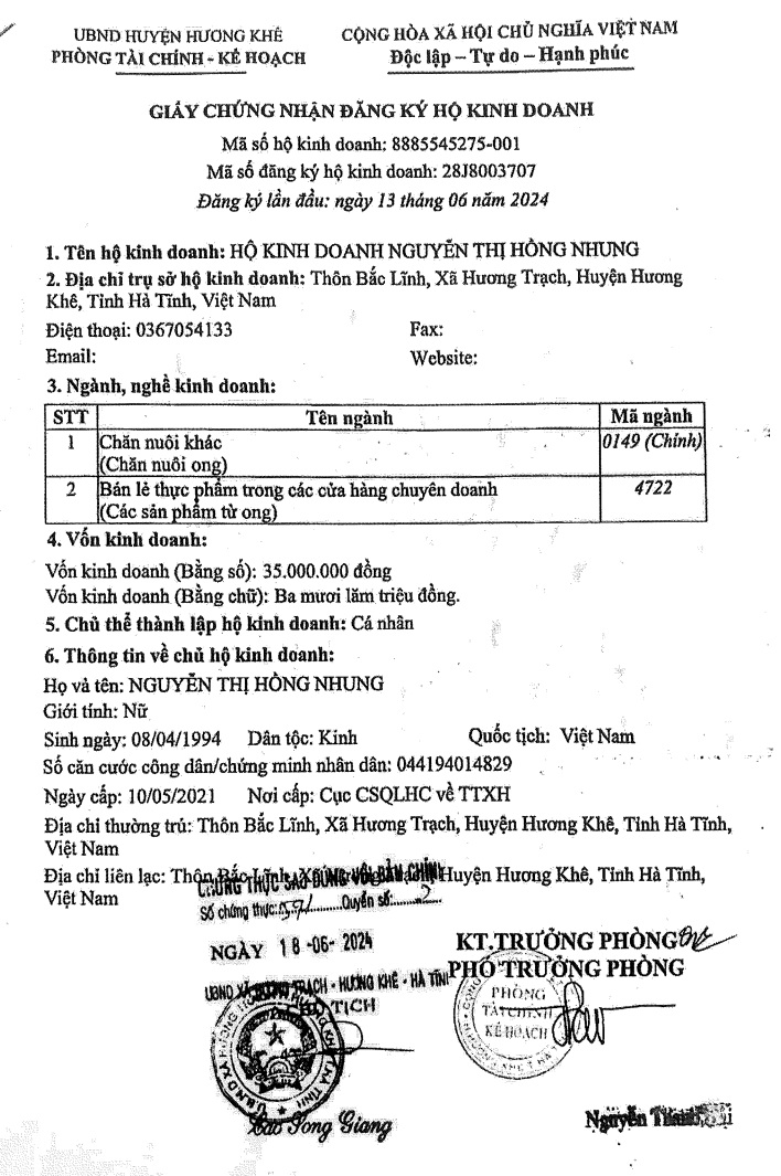 HỘ KINH DOANH NGUYỄN THỊ HỒNG NHUNG