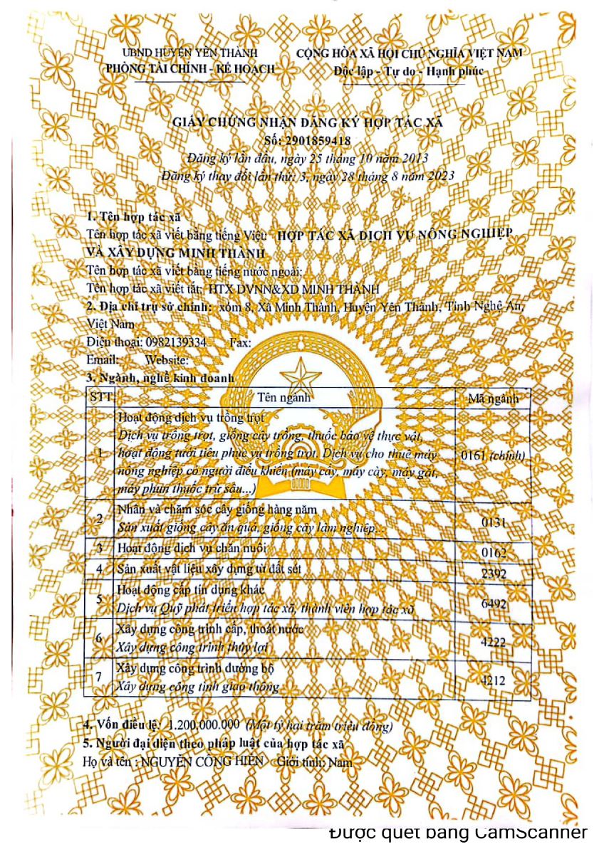 Hợp tác xã dịch vụ nông nghiệp và xây dựng Minh Thành