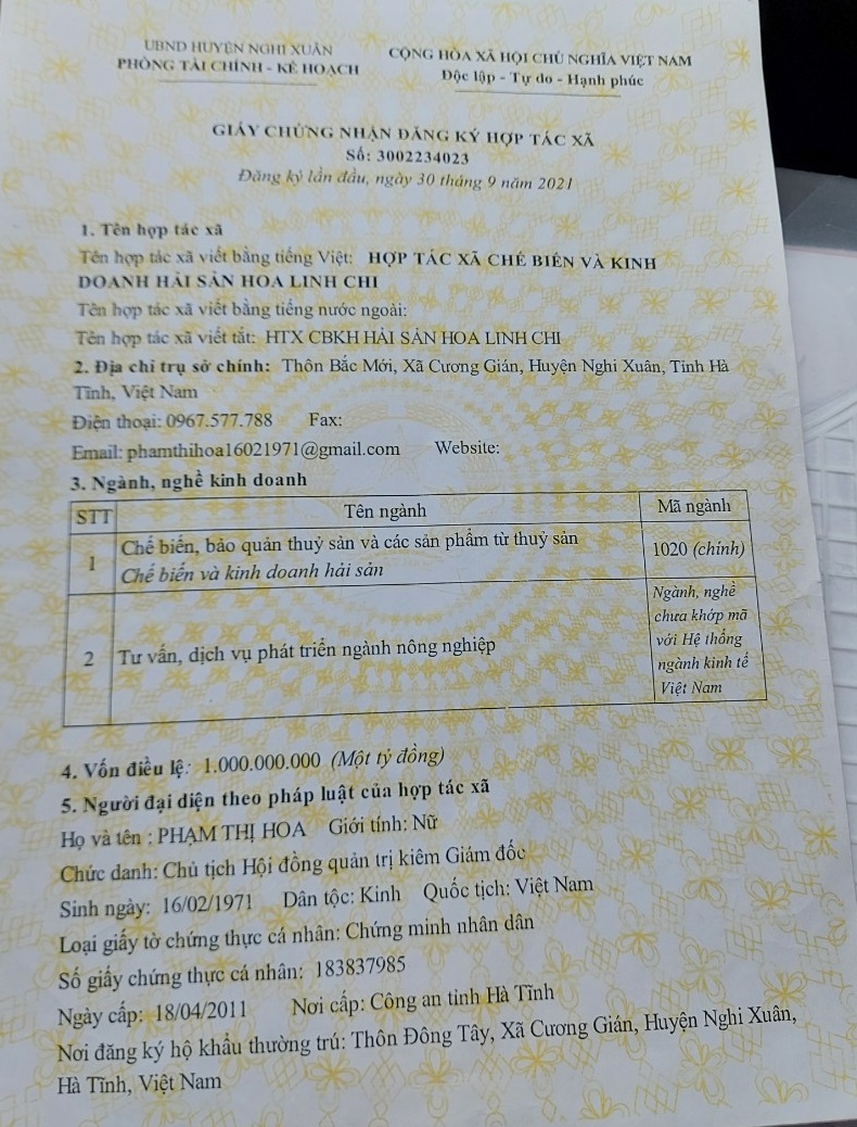 HTX chế biến và kinh doanh hải sản Hoa Linh Chi