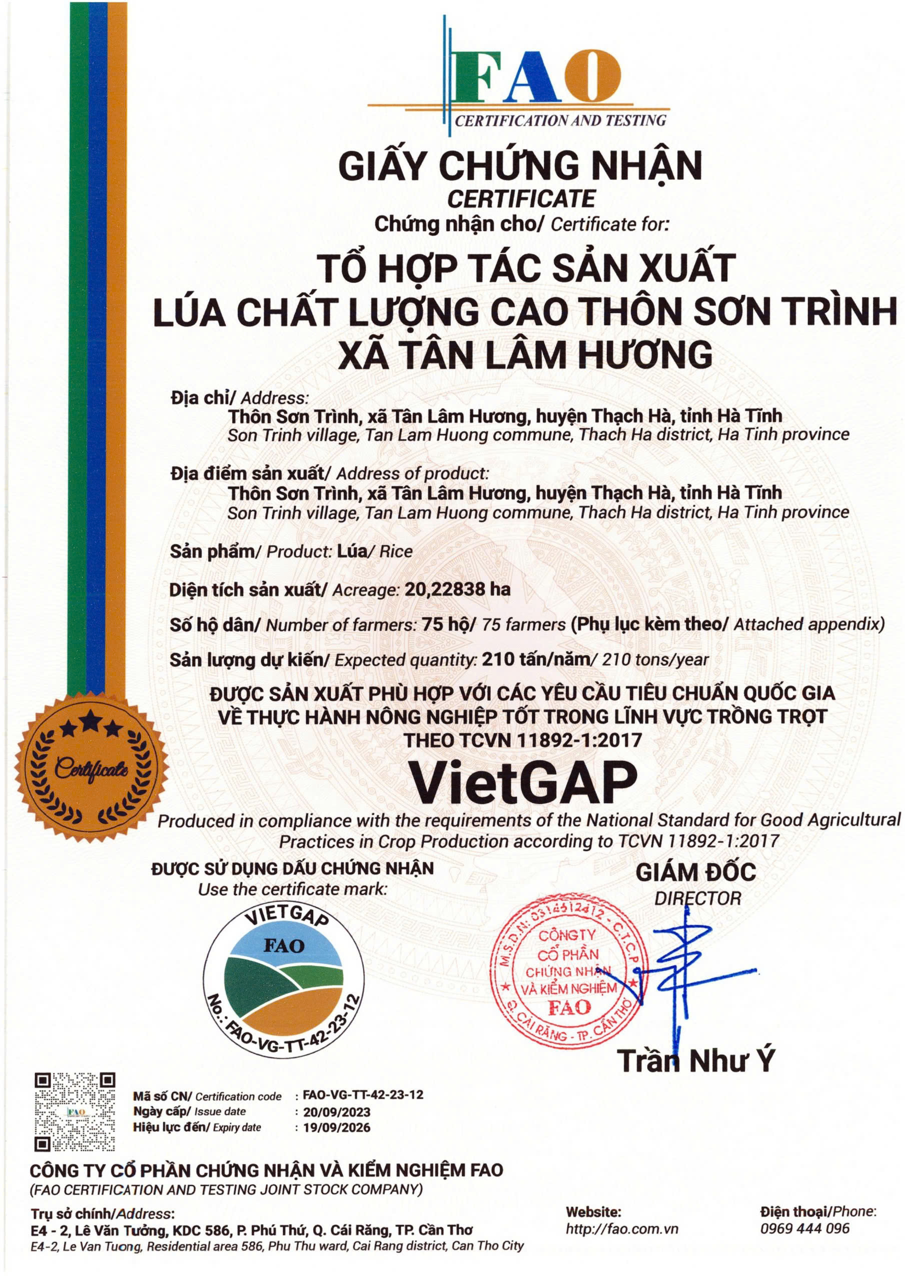 “Tháng 6/2023, gạo ST25 sản xuất trên ruộng rươi ở thị xã Hồng Lĩnh đã được Công ty Cổ phần Chứng nhận và Kiểm nghiệm FAO cấp giấy chứng nhận đạt chuẩn hữu cơ. Đây là sản phẩm gạo đầu tiên trên địa bàn Hà Tĩnh được sản xuất theo tiêu chuẩn hữu cơ”, anh Lê Văn An phấn khởi khoe với chúng tôi giấy chứng nhận gạo đạt chuẩn hữu cơ khó khăn lắm mới đạt được.