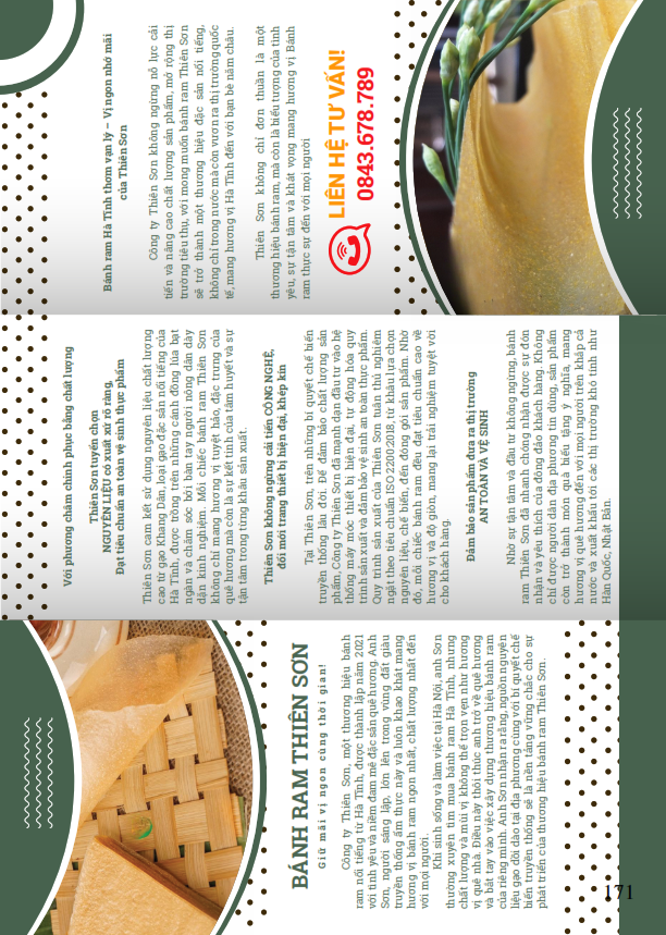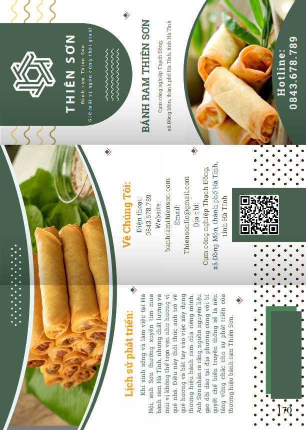 Công ty Thiên Sơn, một thương hiệu bánh ram nổi tiếng từ Hà Tĩnh, được thành lập năm 2021 với tình yêu và niềm đam mê đặc sản quê hương. Anh Sơn, người sáng lập, lớn lên trong vùng đất giàu truyền thống ẩm thực này và luôn khao khát mang hương vị bánh ram ngon nhất, chất lượng nhất đến với mọi người.