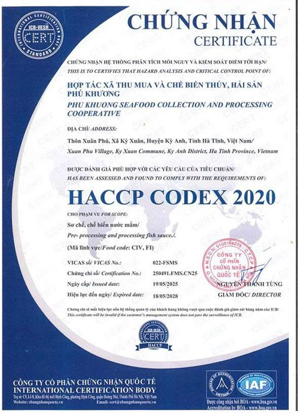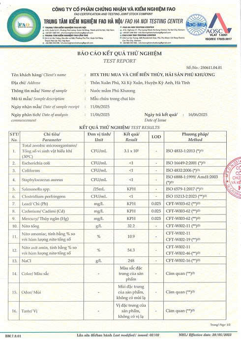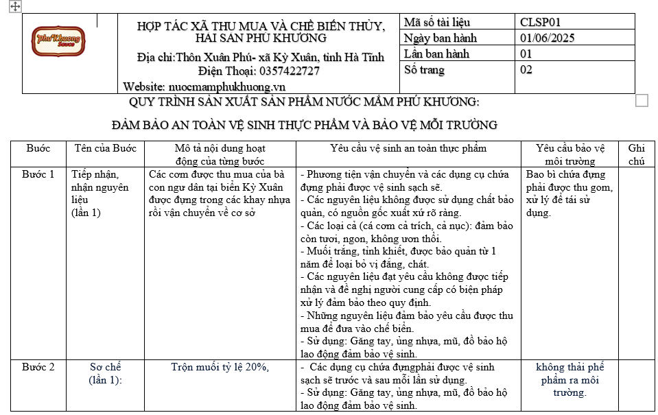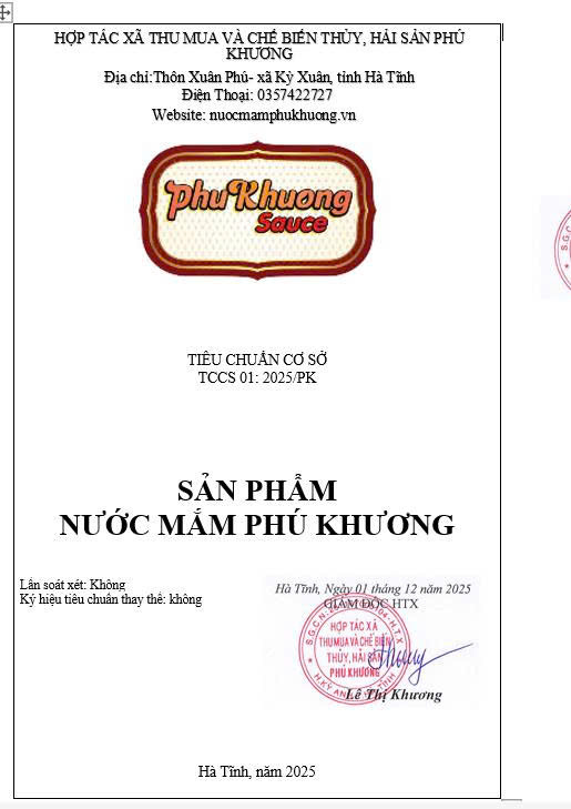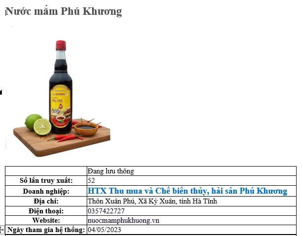 Tên đơn vị/nhà sản xuất: HTX Thu mua và Chế biến thủy hải sản Phú Khương