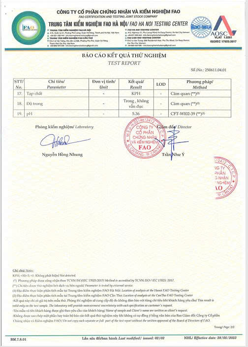nhiên 12–15 tháng, không dùng chất bảo quản hay phụ gia tạo màu.
