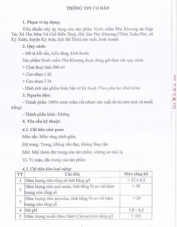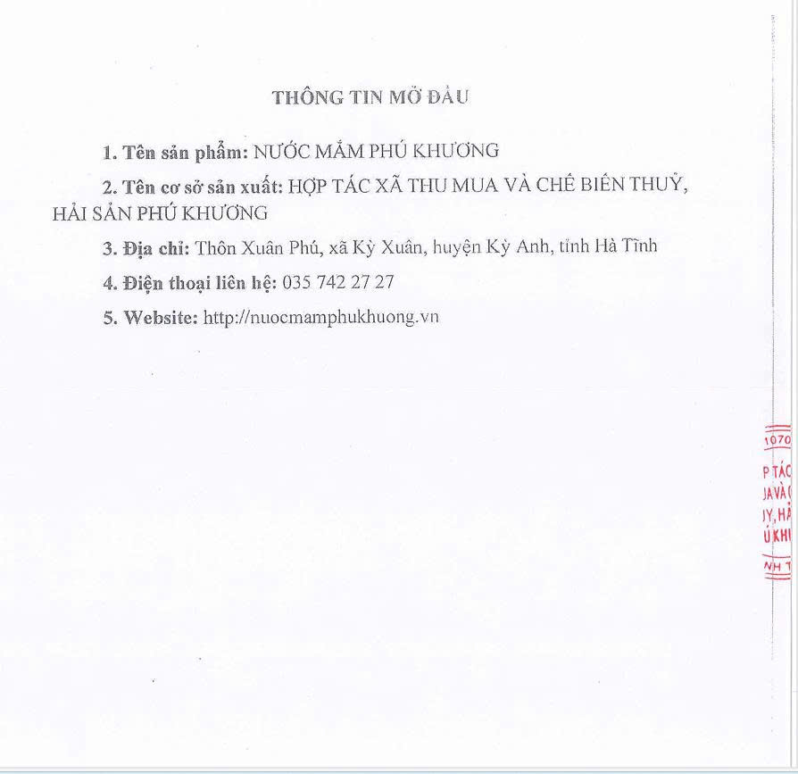 - Tên sản phẩm: Nước mắm Phú Khương - (Cá thể: )
