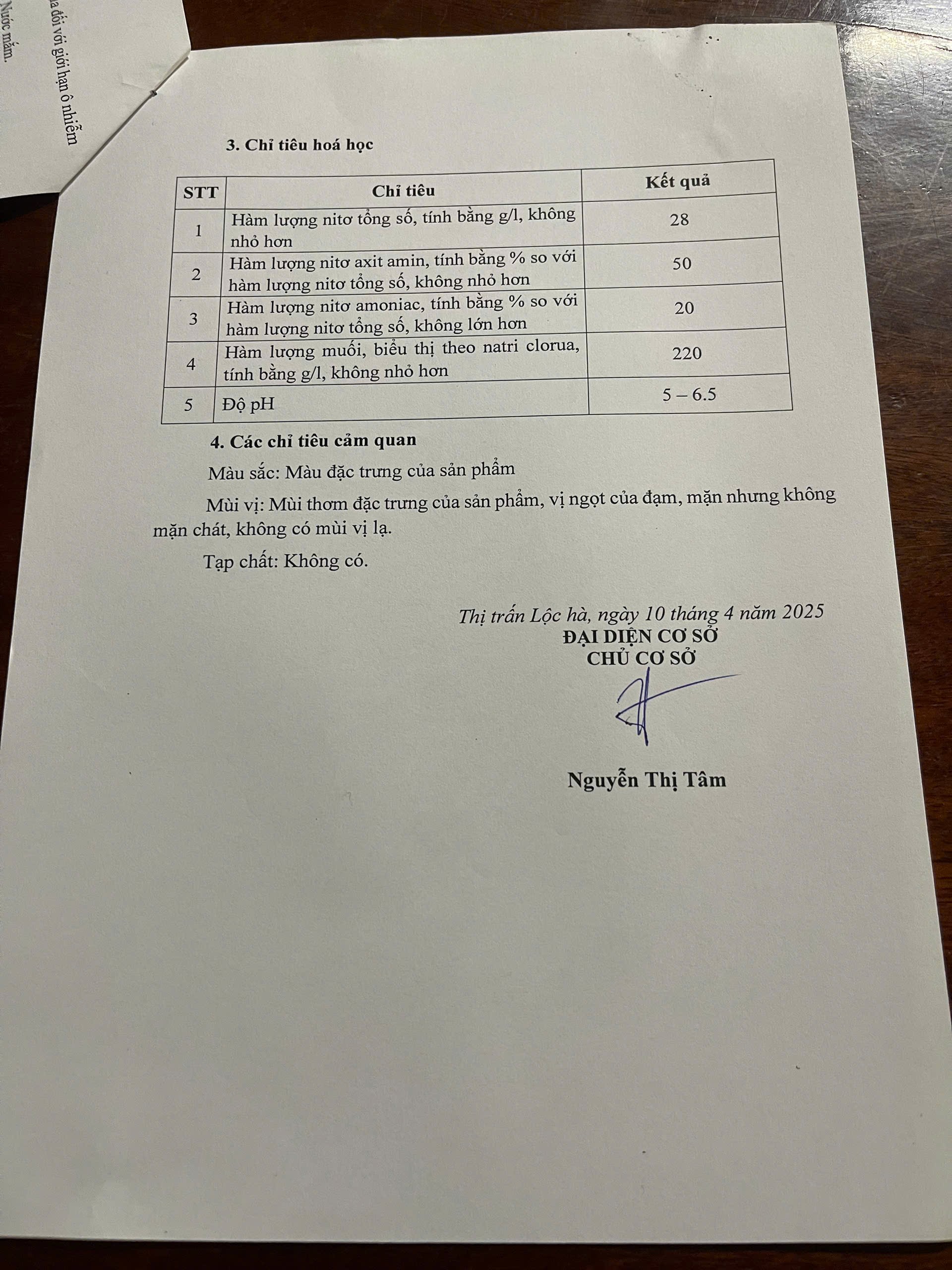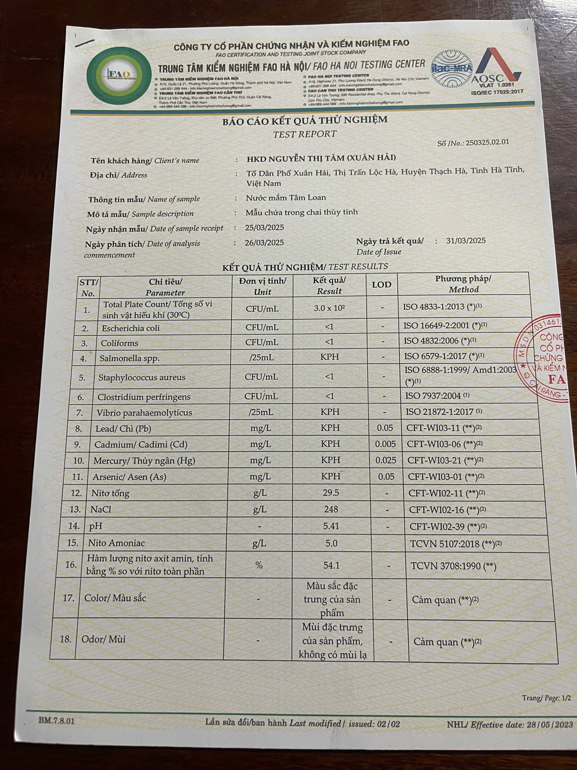 - Tên sản phẩm: Nước mắm Tâm Loan - (Cá thể: )