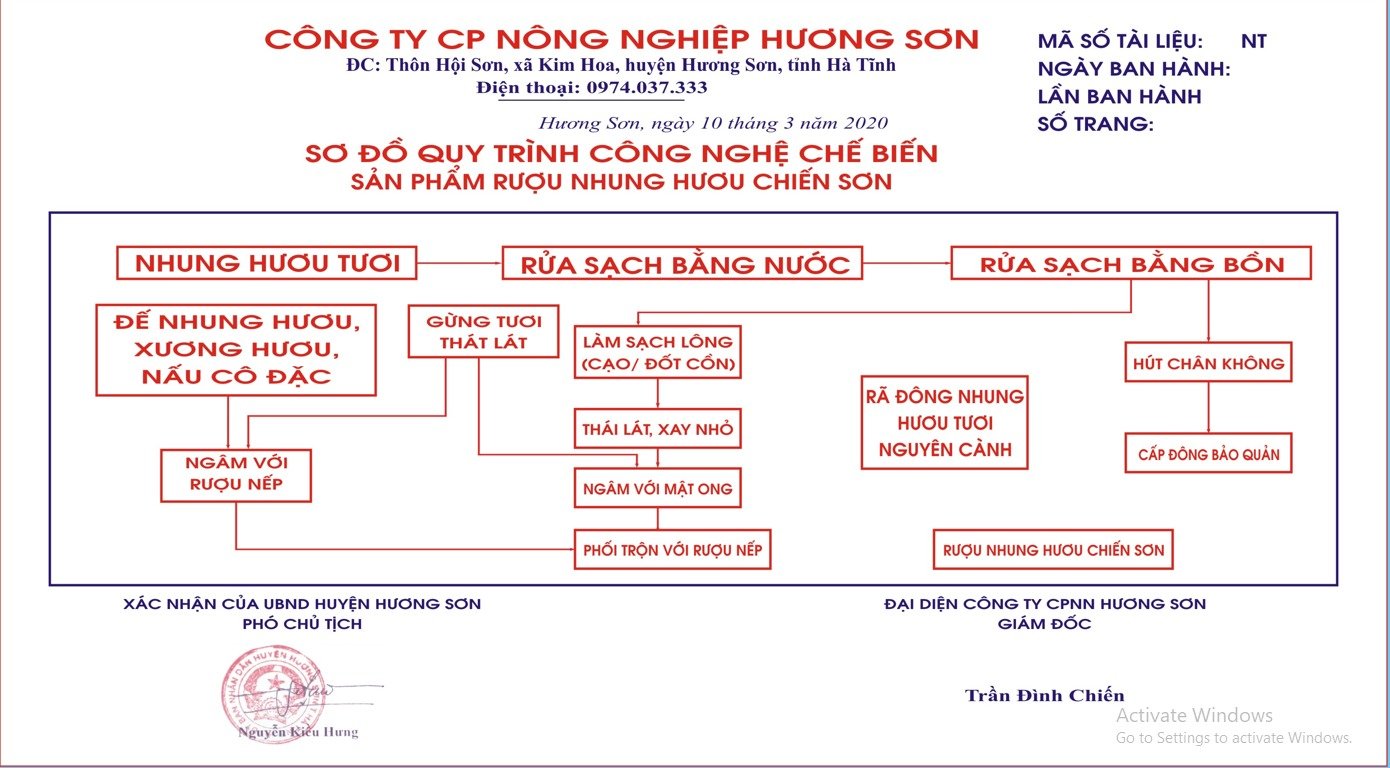 Hương Sơn tiêu chuẩn cơ sở sản phẩm rượu nhung hươu Hương Sơn Chiến Sơn
